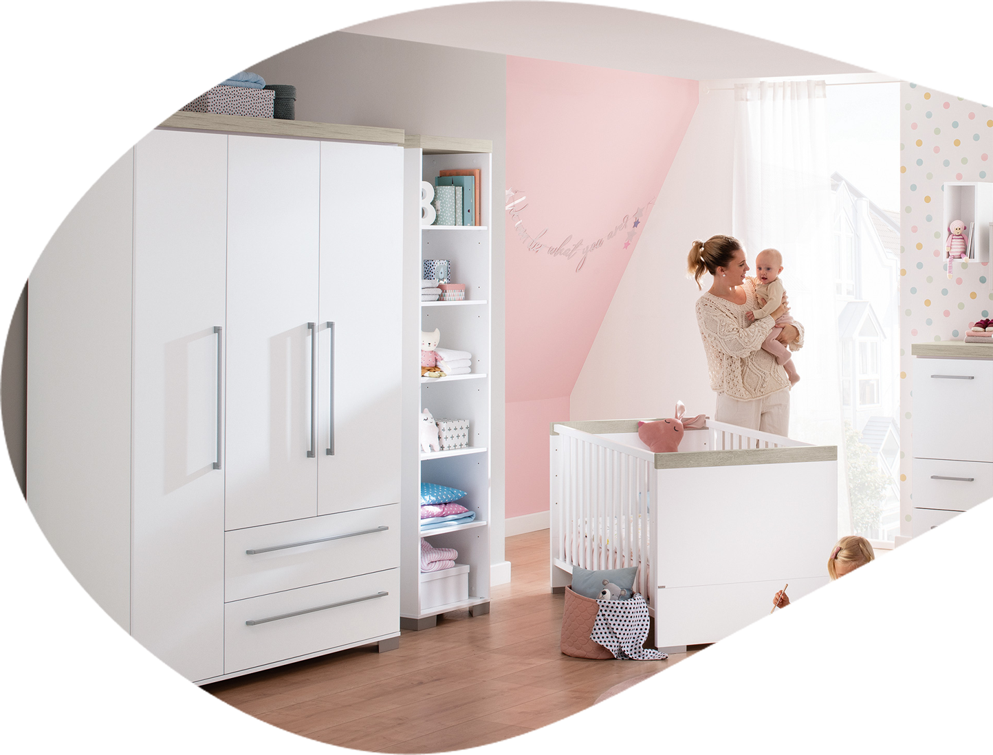 In unseren Kleiderschränken finden Kleidung, Spielsachen und mehr ihren Platz. Mit cleveren Aufteilungen und viel Stauraum sorgen sie für Ordnung und schaffen Platz für Neues.