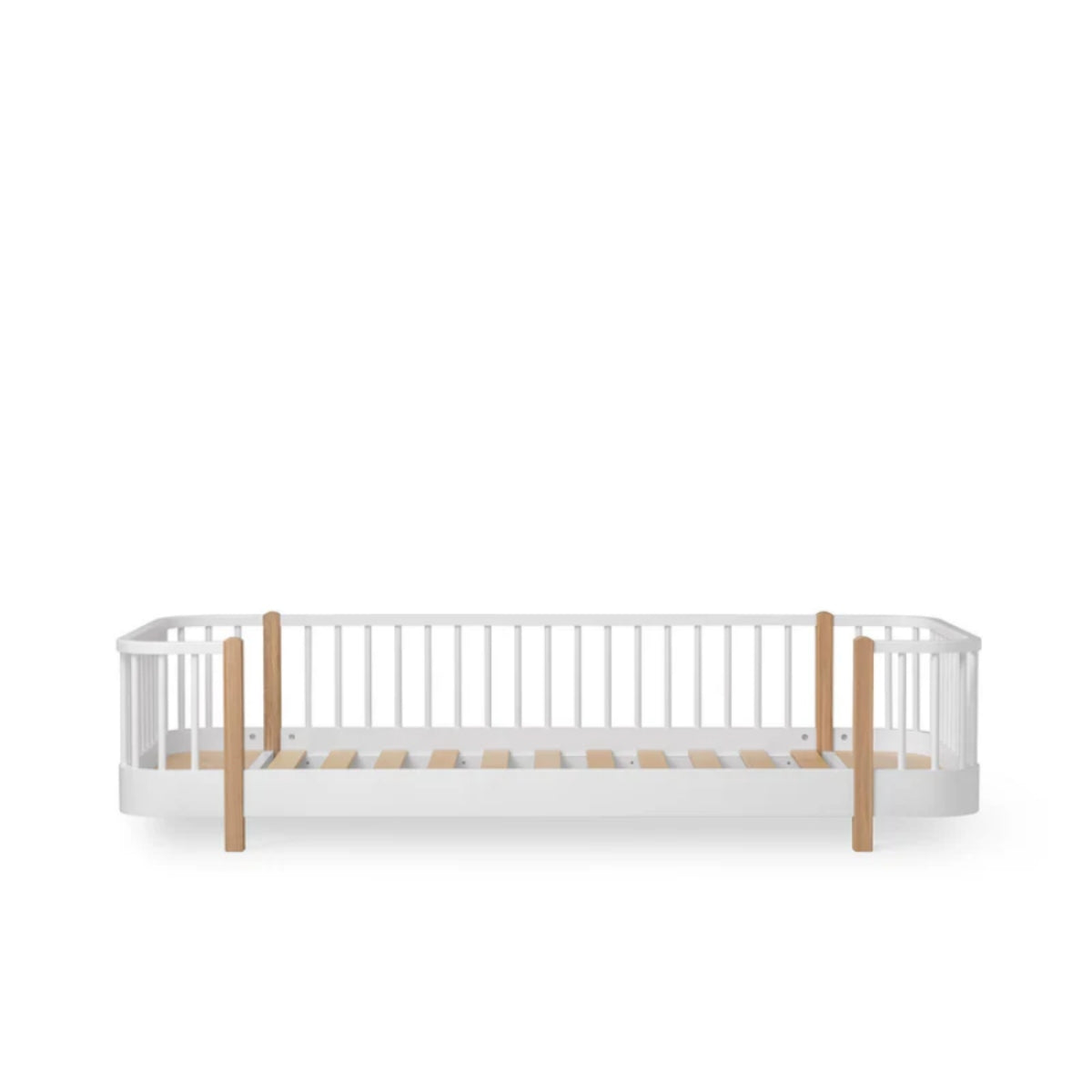 Das Wood Original Bodenbett in Weiß/Eiche bietet Kindern ab etwa zwei Jahren einen sicheren, selbstständigen Einstieg in die Schlafumgebung. Mit einer großzügigen Liegefläche von 90 x 200 cm, schützenden Seiten und hochwertigen Naturmaterialien schafft es eine geborgene Atmosphäre für Schlaf, Spiel und Nähe. Gefertigt in Europa, REACH-zertifiziert lackiert und im klaren Oliver-Furniture-Design verbindet es Sicherheit, Komfort und zeitlose Ästhetik.